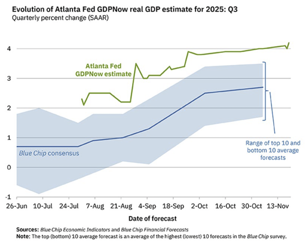 Feed on.  So why is this Chief Market Strategist that has been espousing his bearishness in recent GVA Economic & Market Updates suddenly sounding so bullish now that we are in the midst of a pullback?  Because it’s all a matter of timing.  I continue to contend that things could get dicey for the U.S. stock market as we make our way through 2026.  But it’s not 2026 yet.  And stuff has to happen between now and sometime in 2026 before I’m ready to declare that potential bearishness is something that may actually happen and we may need to adjust portfolios at the margins to do something about (we may not need to adjust either – as I always like to say, a well-constructed asset allocation portfolio is one that is positioned in advance for different potential market outcomes).  Put simply, this is a 2026 problem to worry about.  In the meantime, the market continues to provide a feast of reasons to remain bullish as we put the institutional trading season behind us (effectively ended last Friday) and retailer traders take over to potentially rally this market hard into the end of the year.  Predictions of 7000 by the end of 2025 and 7200 by January/February 2026 are still in place from this Chief Market Strategist.